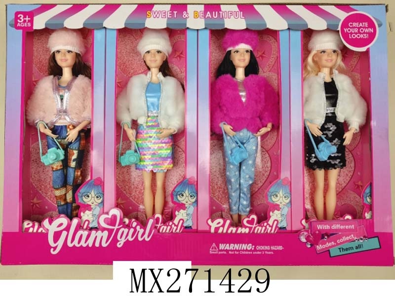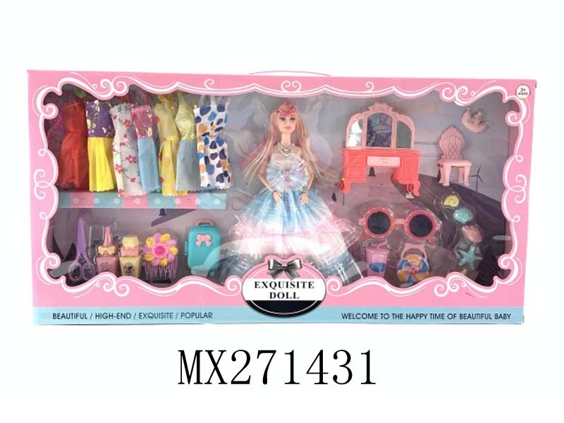 11.5寸实身11关节时尚芭芘娃娃时装带理发套装吸塑配件
