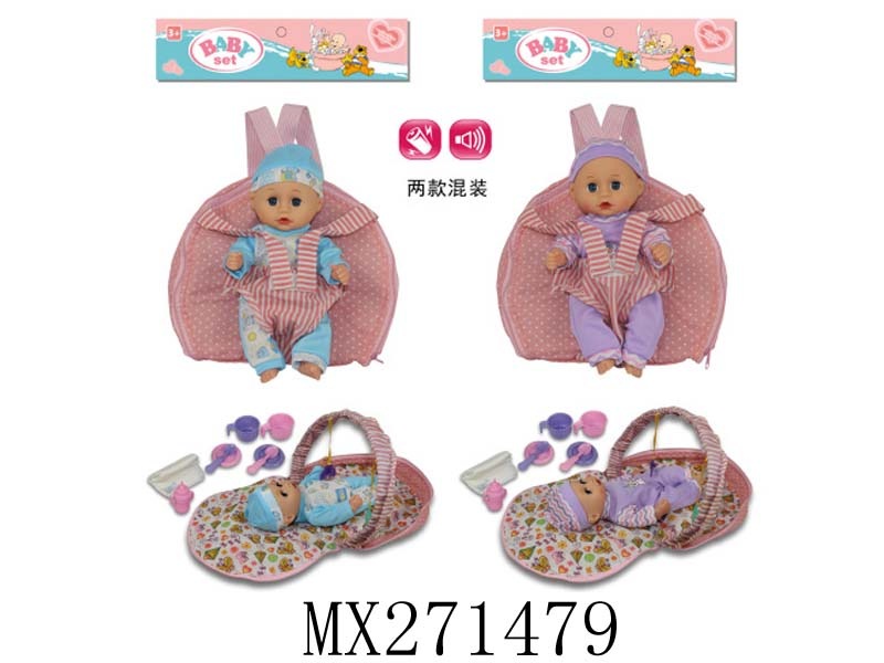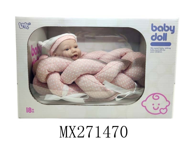 10寸全搪胶笑脸娃娃+睡篮+奶瓶