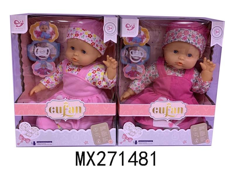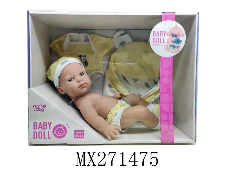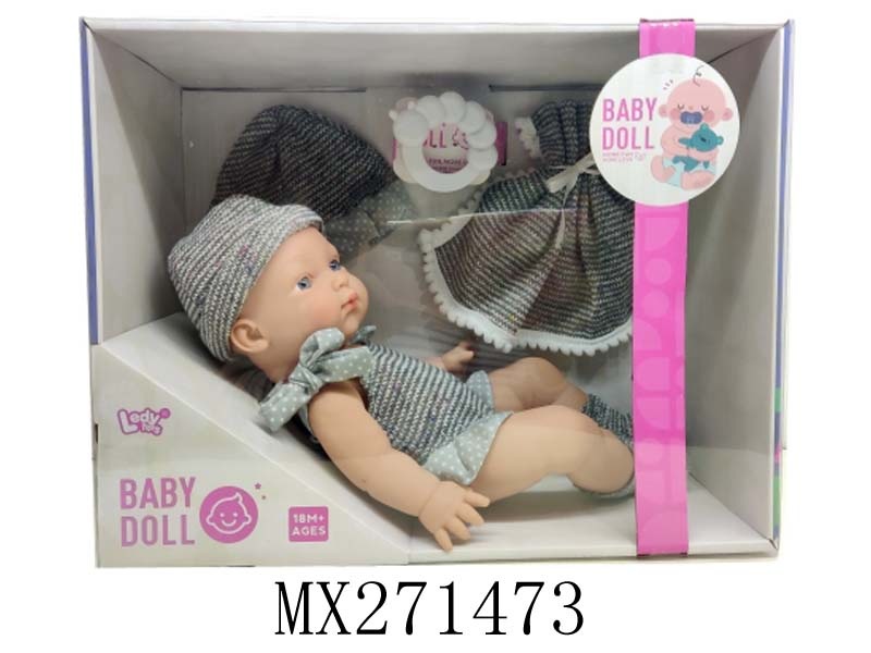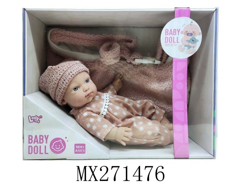 12寸全搪胶娃娃+配帽+方巾+奶瓶+毛毛虫摇铃