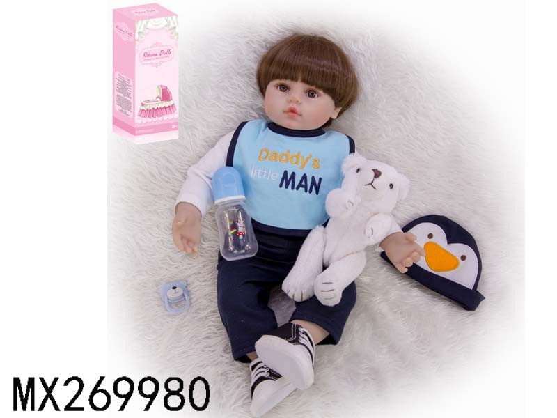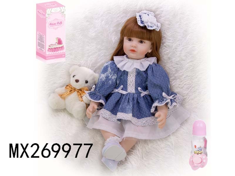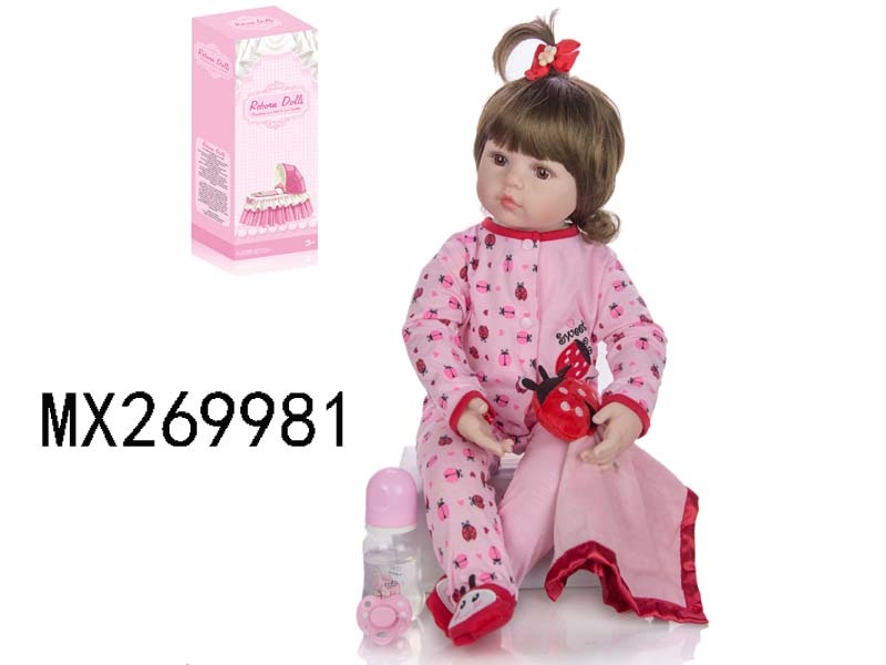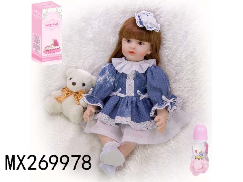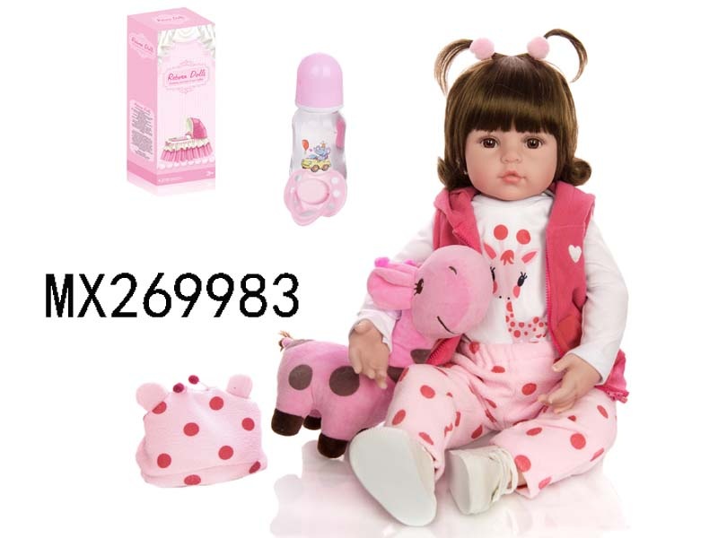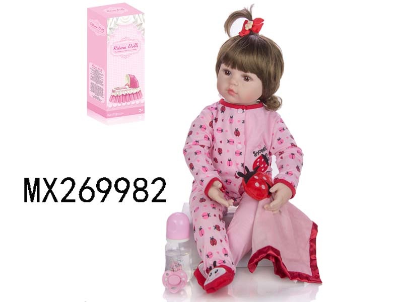 60cm重生娃娃高仿真婴儿娃娃(假发套)带奶瓶,磁性奶嘴,尿布,出生卡,鞋子,小熊
