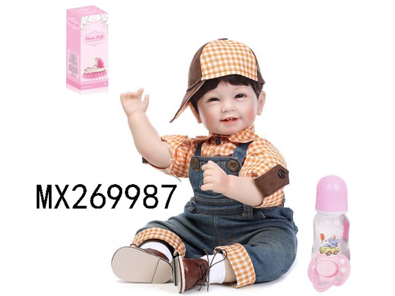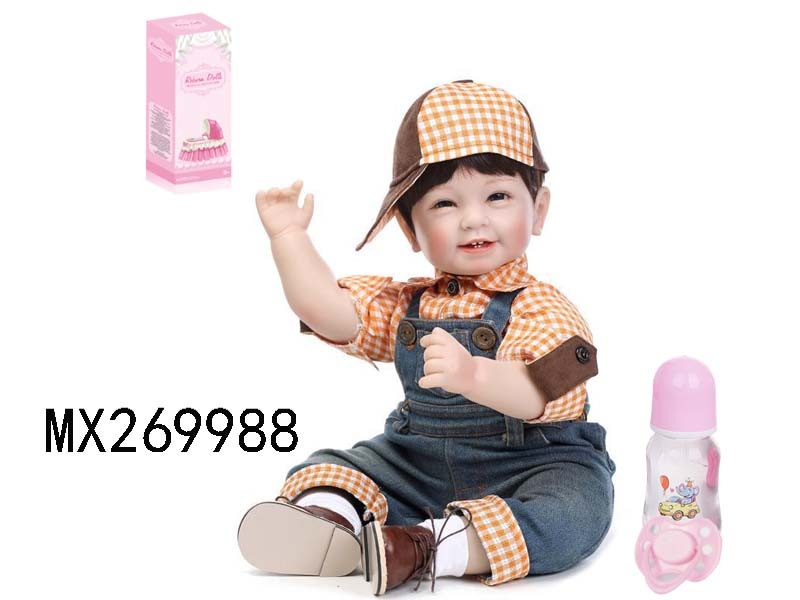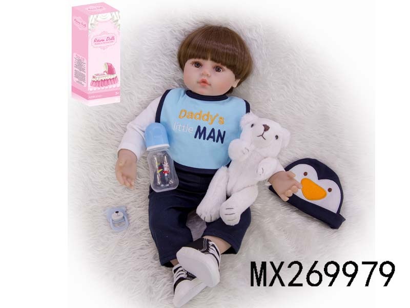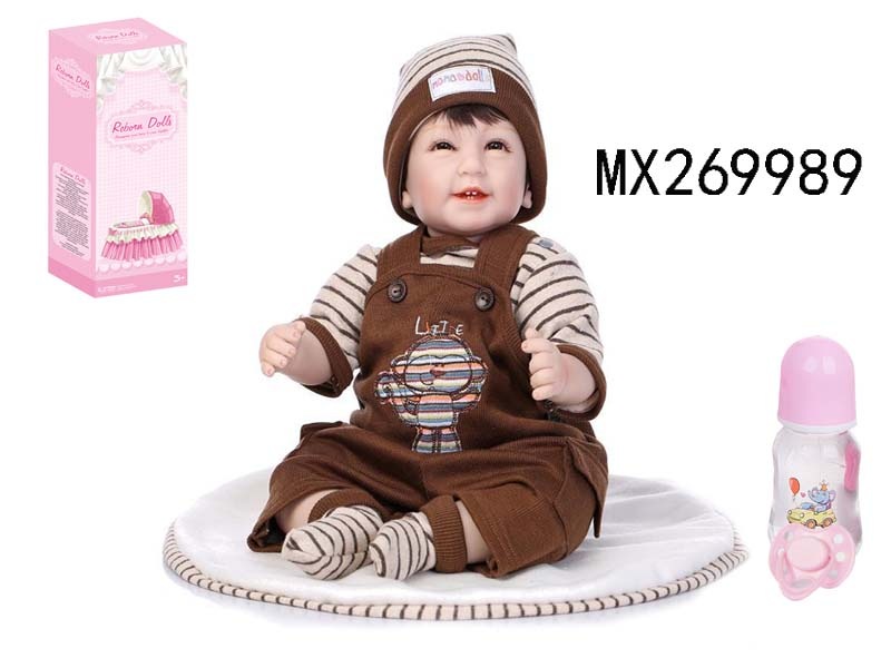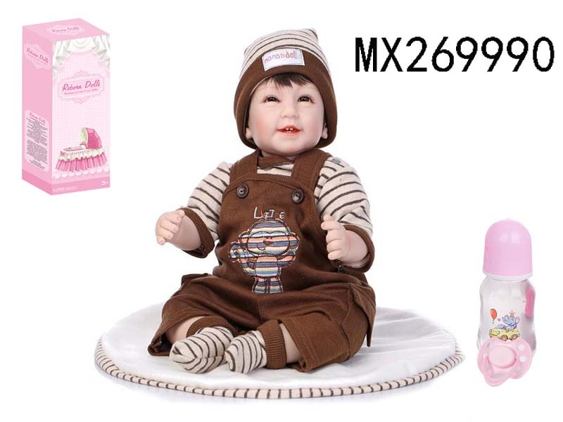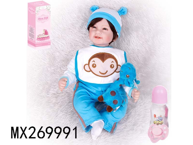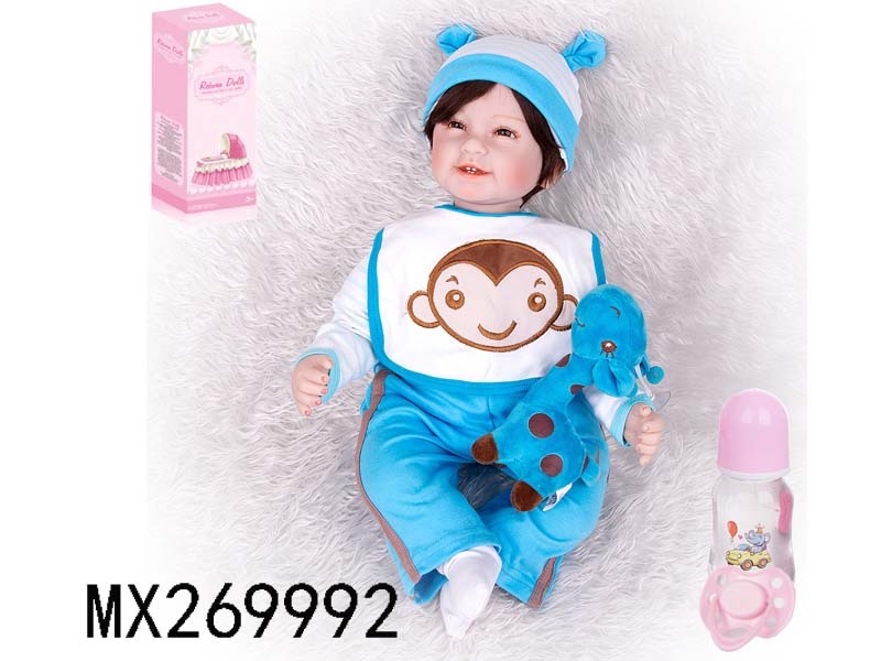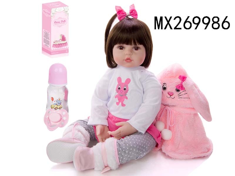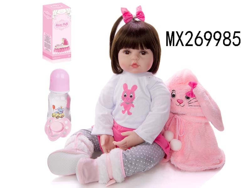 55cm重生娃娃高仿真婴儿娃娃(假发套)带奶瓶,磁性奶嘴,尿布,出生卡,小兔子,鞋子