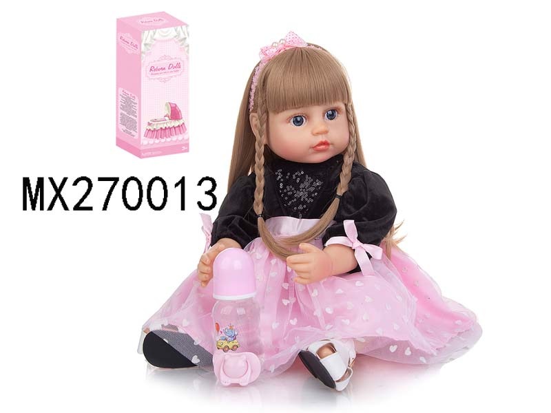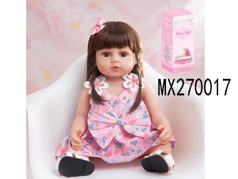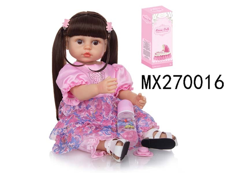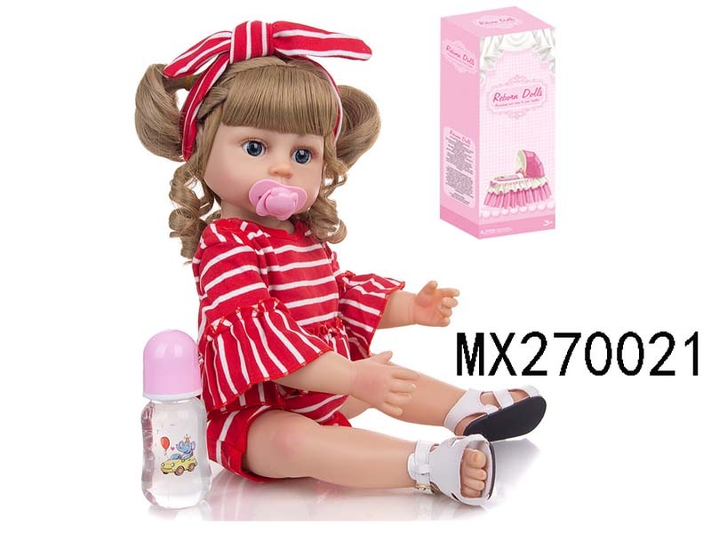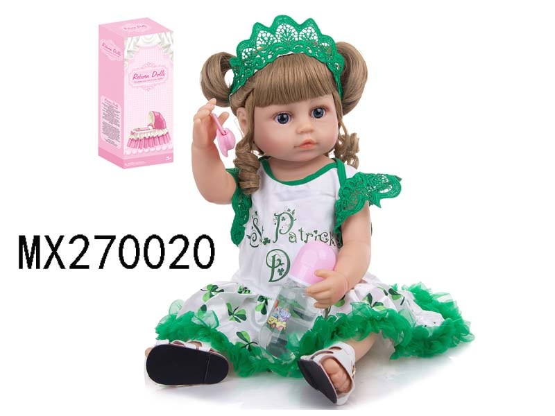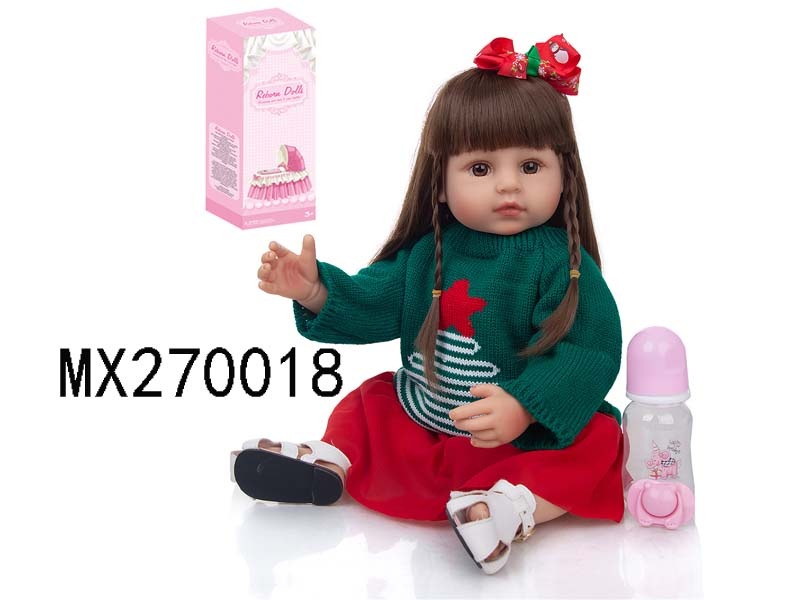 55厘米重生娃娃高仿真婴儿娃娃,(假发套)全身软胶,带奶瓶,磁性奶嘴,尿布,出生卡,凉鞋,