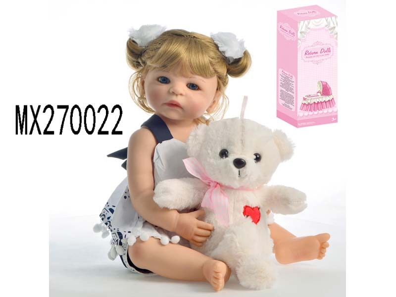 55厘米重生娃娃高仿真婴儿娃娃,(假发套)全身软胶,带奶瓶,磁性奶嘴,尿布,出生卡,凉鞋,小熊