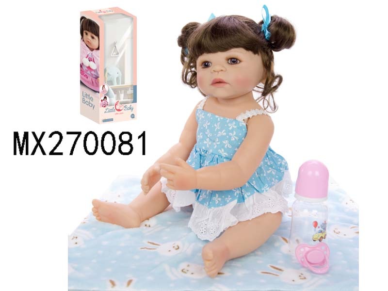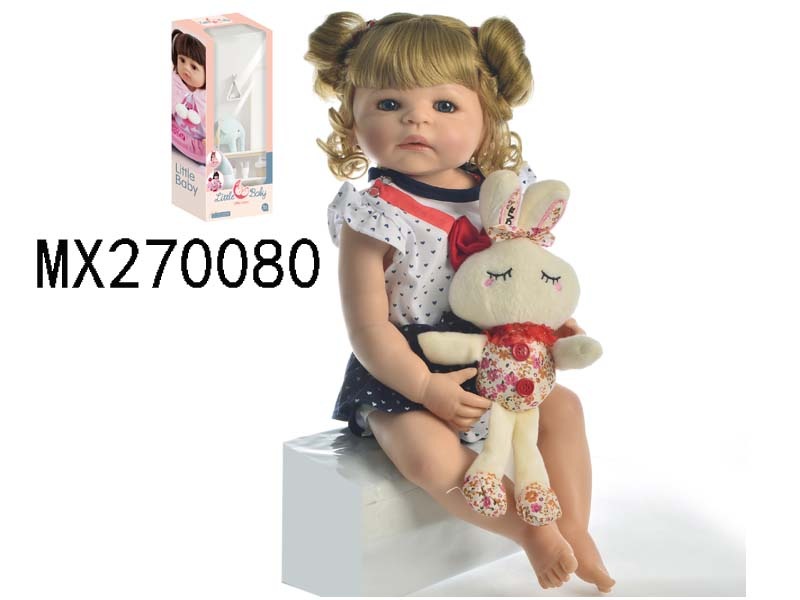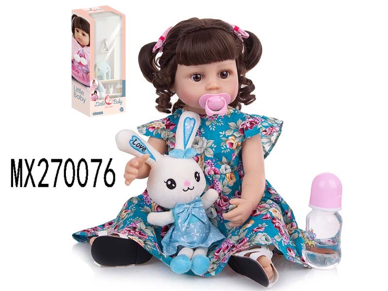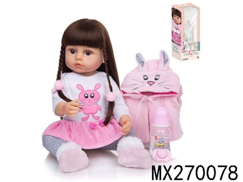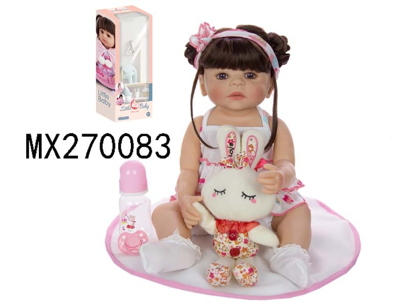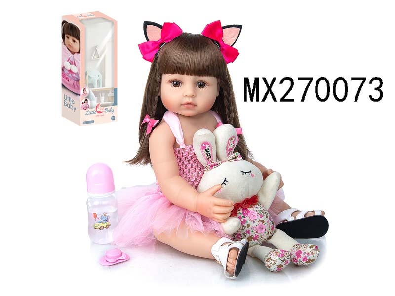 55厘米重生娃娃高仿真婴儿娃娃,(假发套)全身软胶,带奶瓶,磁性奶嘴,尿布,出生卡,凉鞋,兔子
