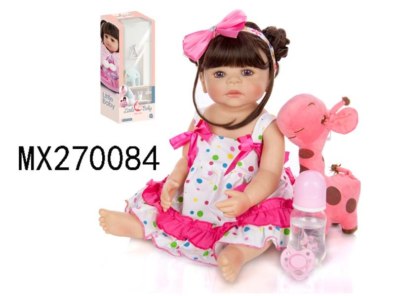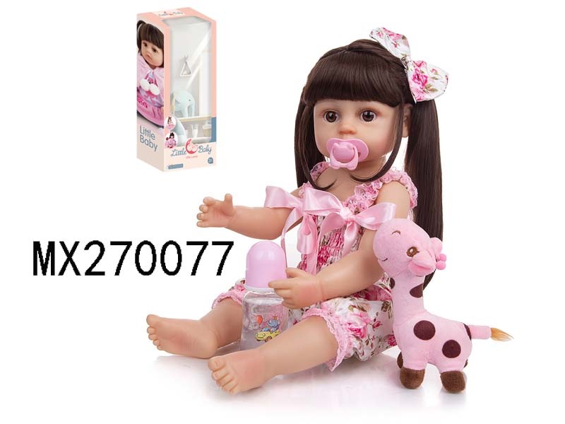 55厘米重生娃娃高仿真婴儿娃娃,(假发套)全身软胶,带奶瓶,磁性奶嘴,尿布,出生卡,长颈鹿
