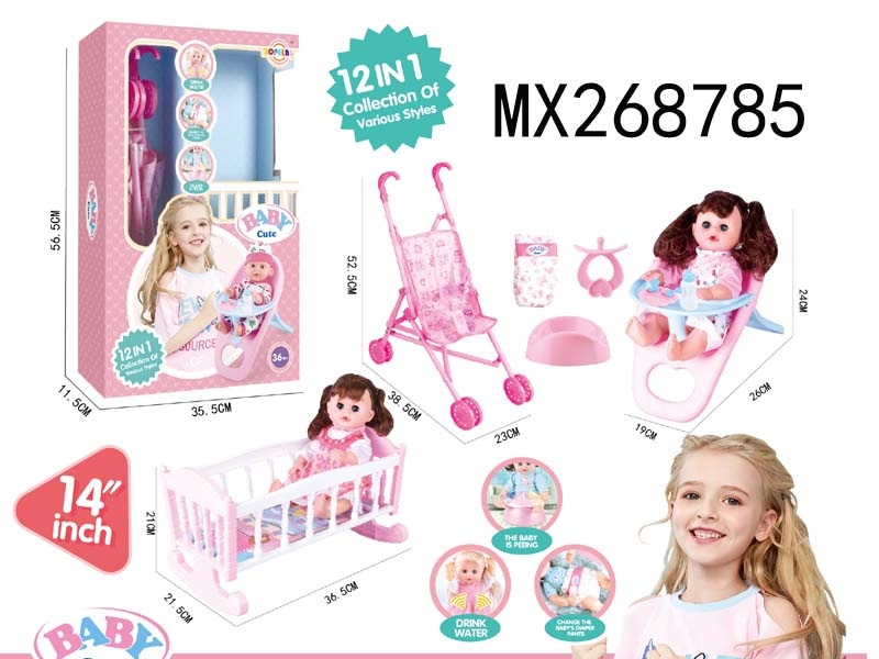 14寸活眼娃娃公仔10合1套装6声IC 包电
