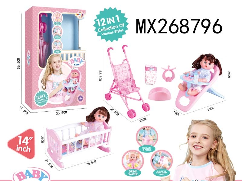 14寸活眼娃娃公仔12合1套装6声IC 包电
