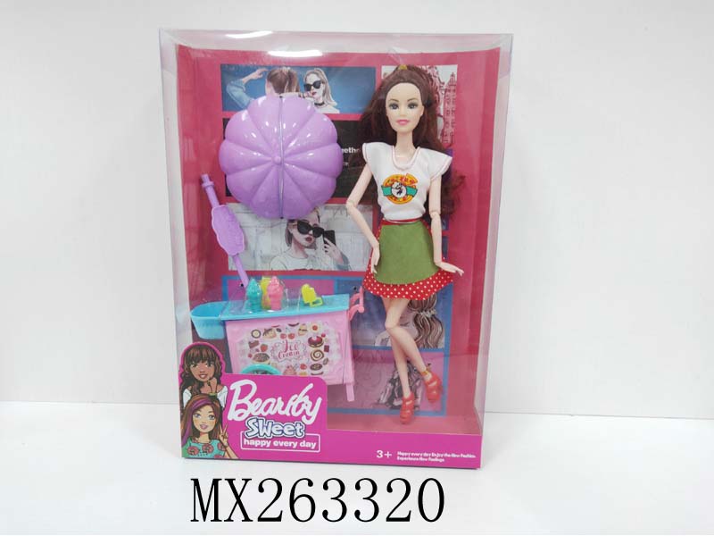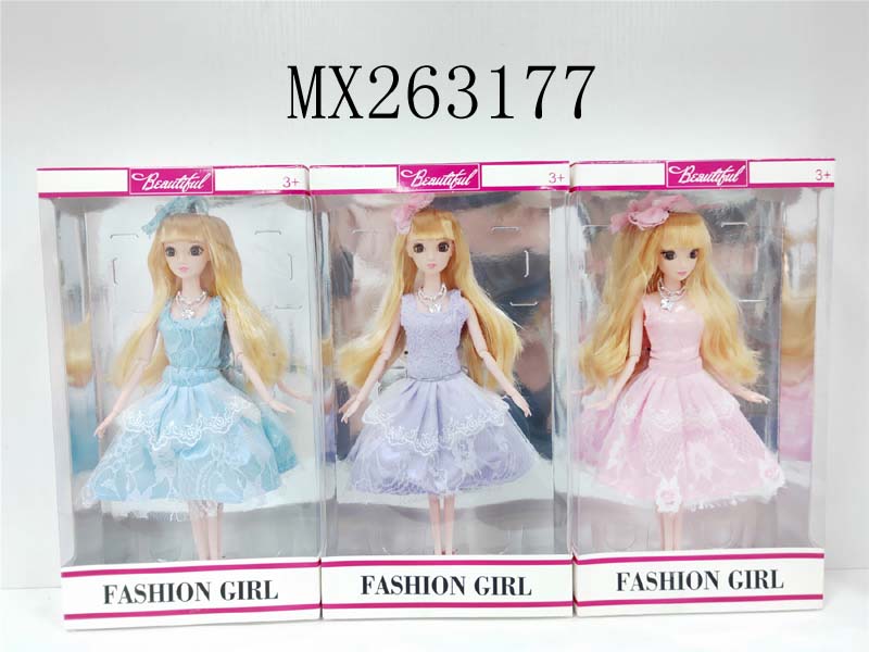11寸9关节3D眼瞳时尚女孩 芭比带头饰+项链