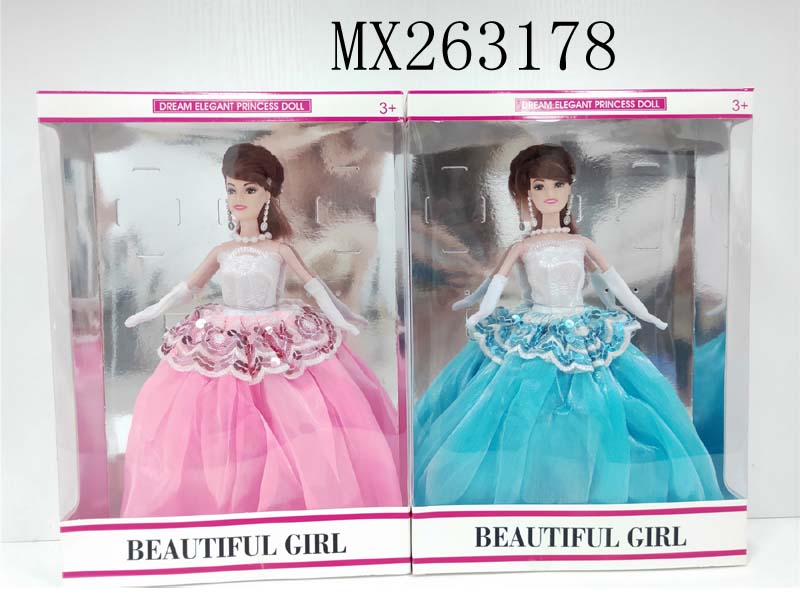 11寸关节身晚礼服芭比带 耳环+珍珠项链+手套
