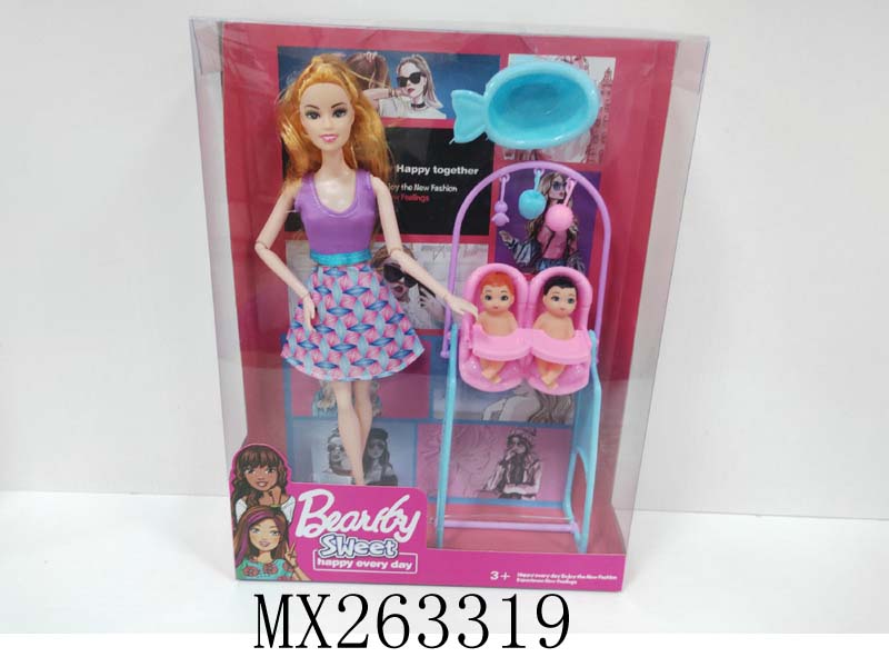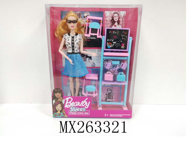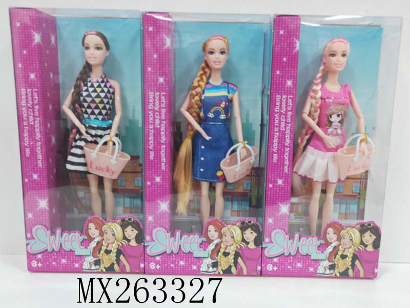 11.5寸九关节长发辫子时 尚芭比娃娃带手提包