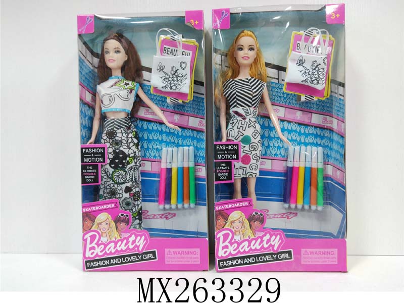 11寸实身活手涂鸦时装芭 比手提包+彩色水笔