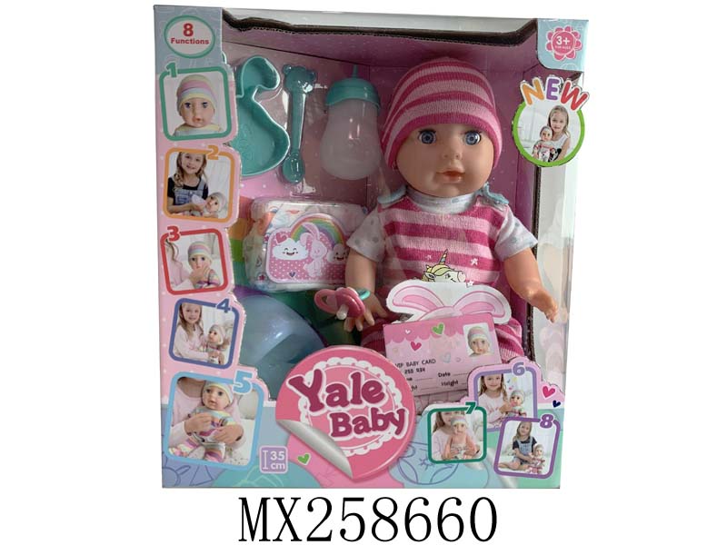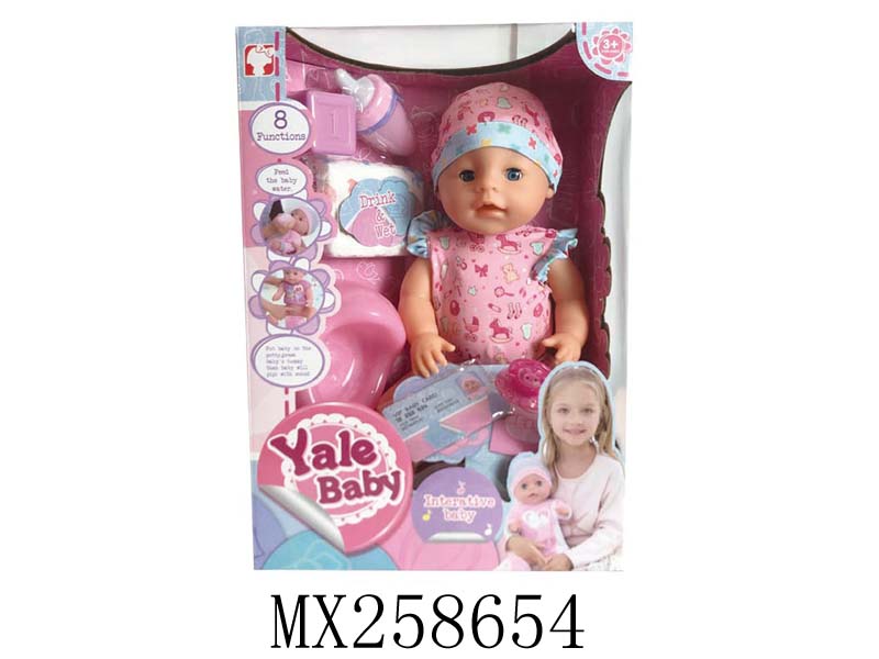 35厘米娃娃带喝水拉尿,身体带按钮,触摸感应,嘴巴磁铁感应8个功能