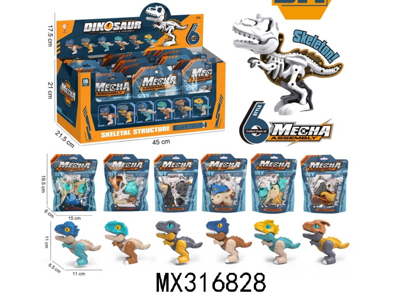 拼装骨骼恐龙(18PCS)6款