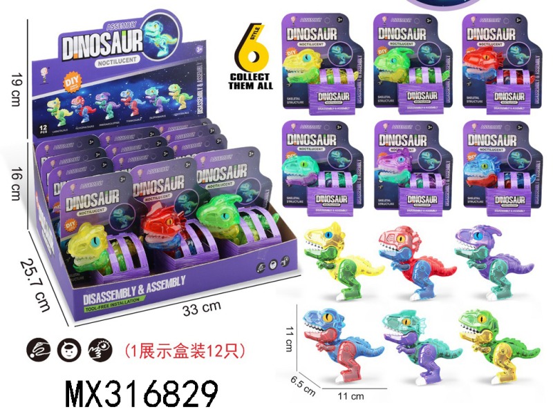 夜光拼装骨骼恐龙(12PCS)6款