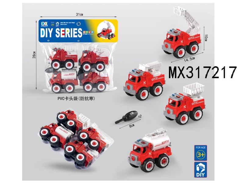 DIY益智拼装消防车4只装(手动)