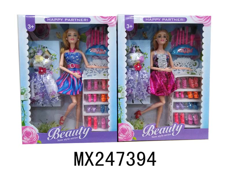 11寸实身芭比11关 节活手鞋柜套装( 2款混装)