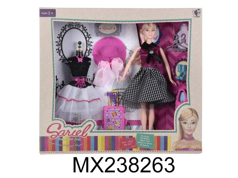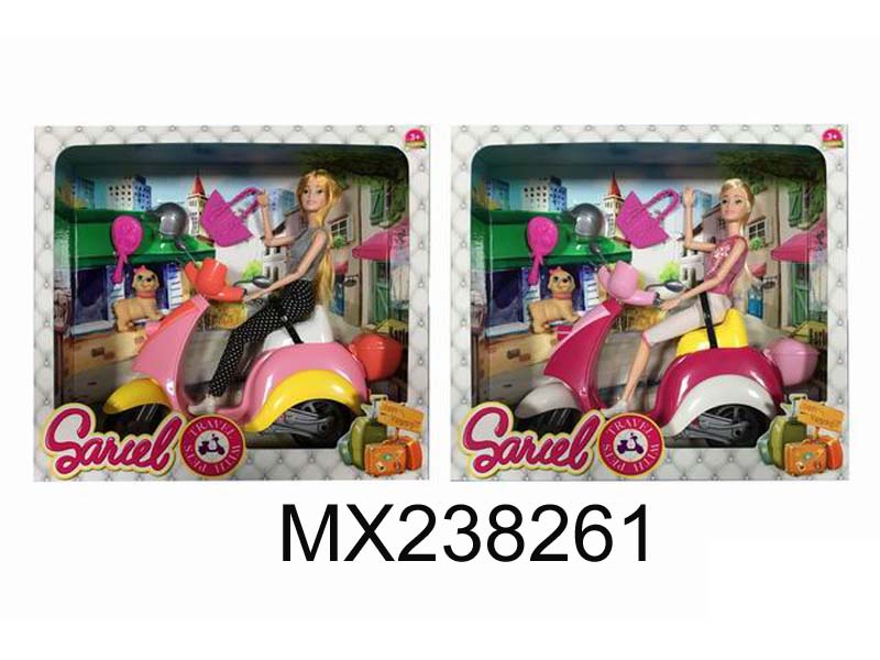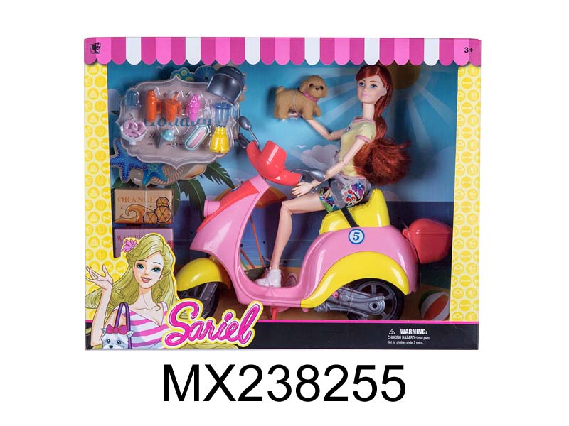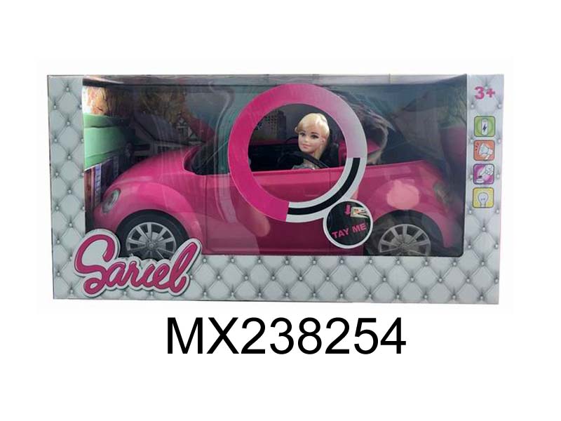 11.5寸娃娃配玫红 敞篷车灯光音乐滑 行包电