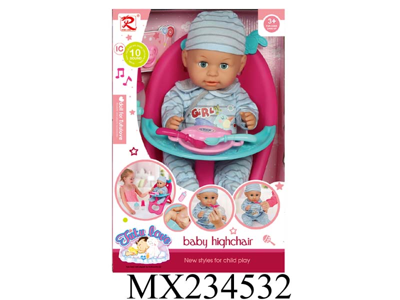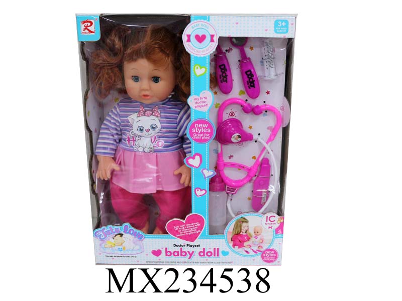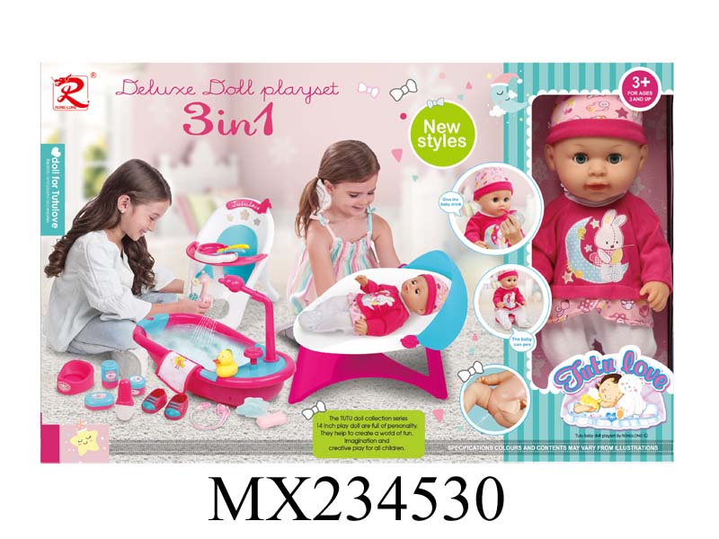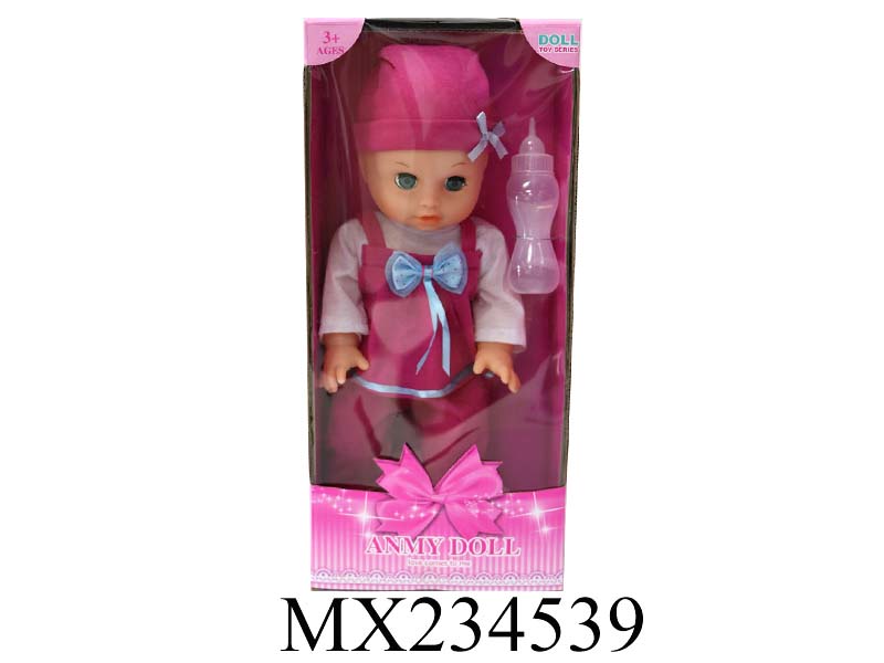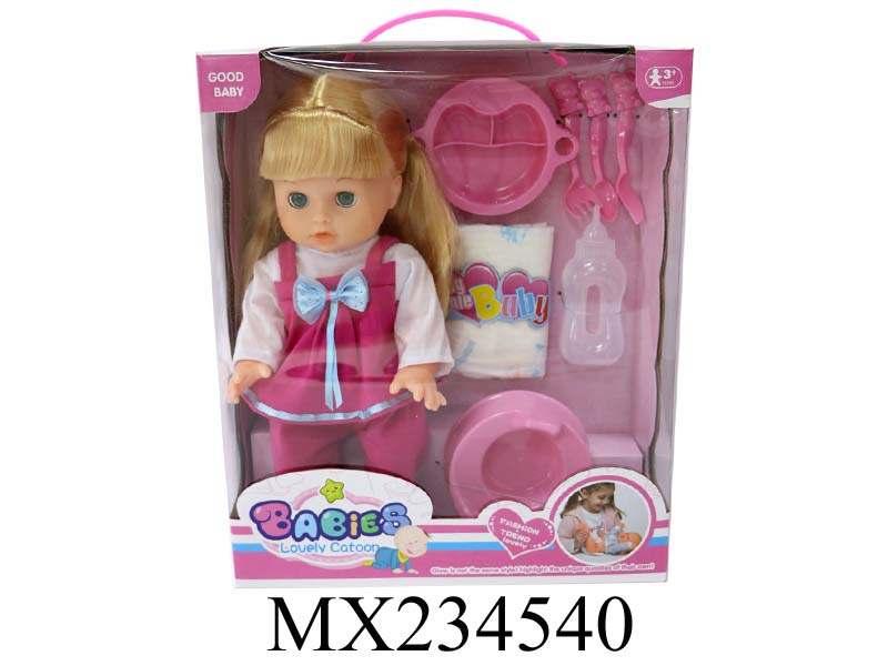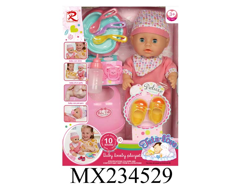 15寸IC活眼胶喝水尿尿女娃配小餐具奶瓶坐便器尿片