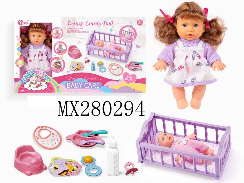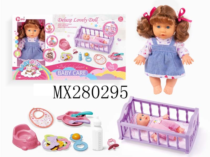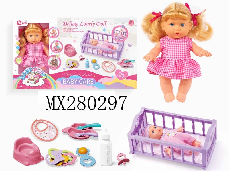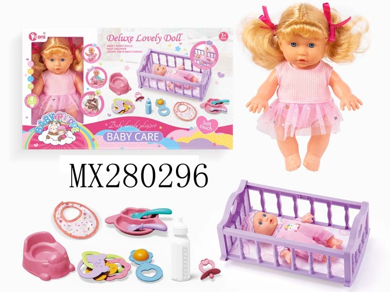 四声9寸女孩娃娃摇床套装