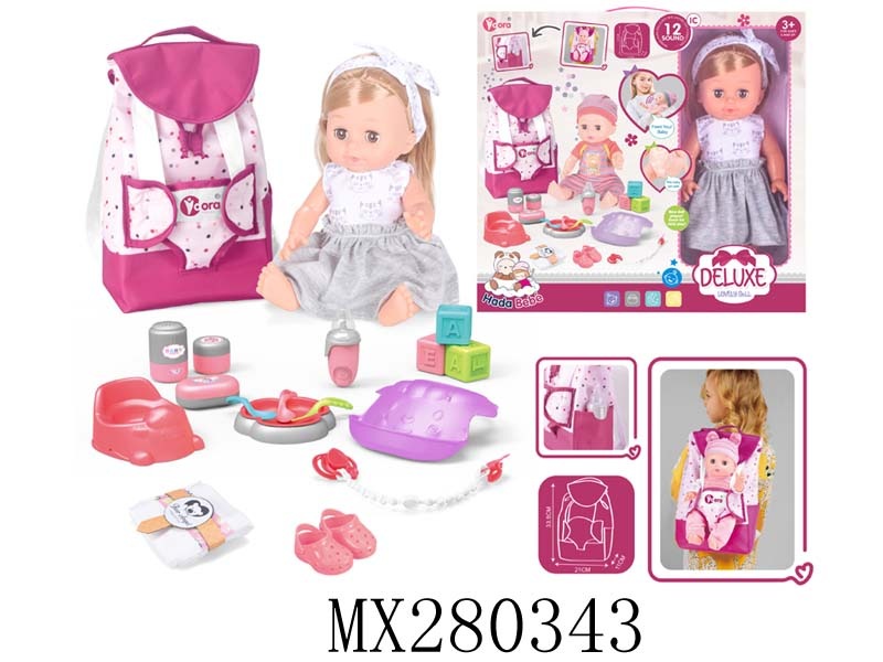 14寸搪胶娃娃护理书包套装(喝水,尿尿,12声IC)