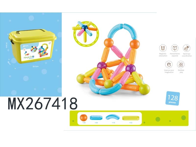小尺寸拼装磁力棒128PCS + 中收纳盒