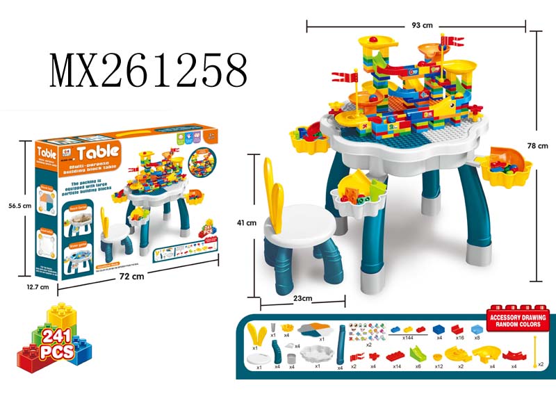多功能带收纳梅花大积木桌+积木椅+百变滑轨道滚珠积木套装(241PCS)
