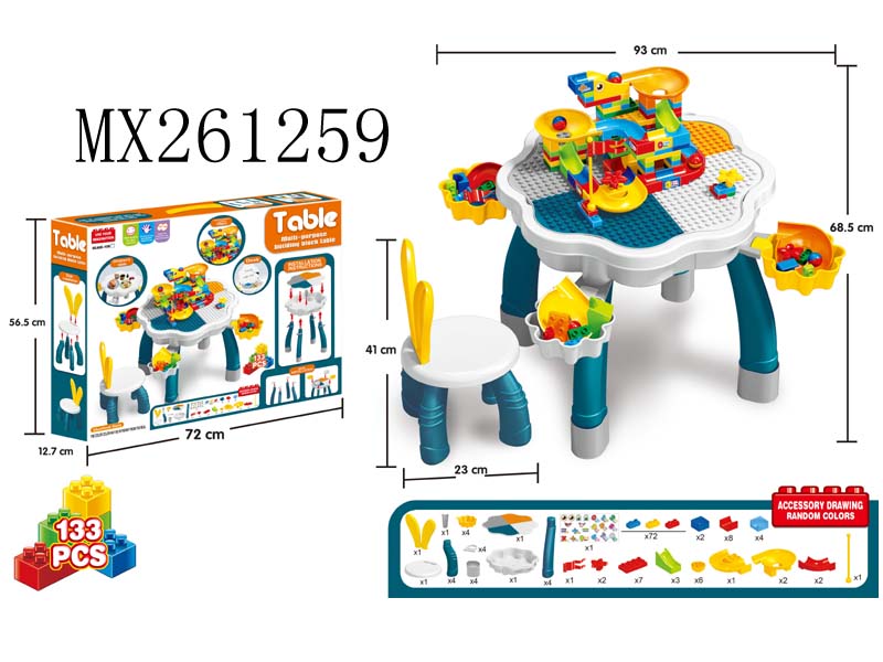 多功能带收纳梅花大积木桌+积木椅+百变滑轨道滚珠积木套装(133PCS)