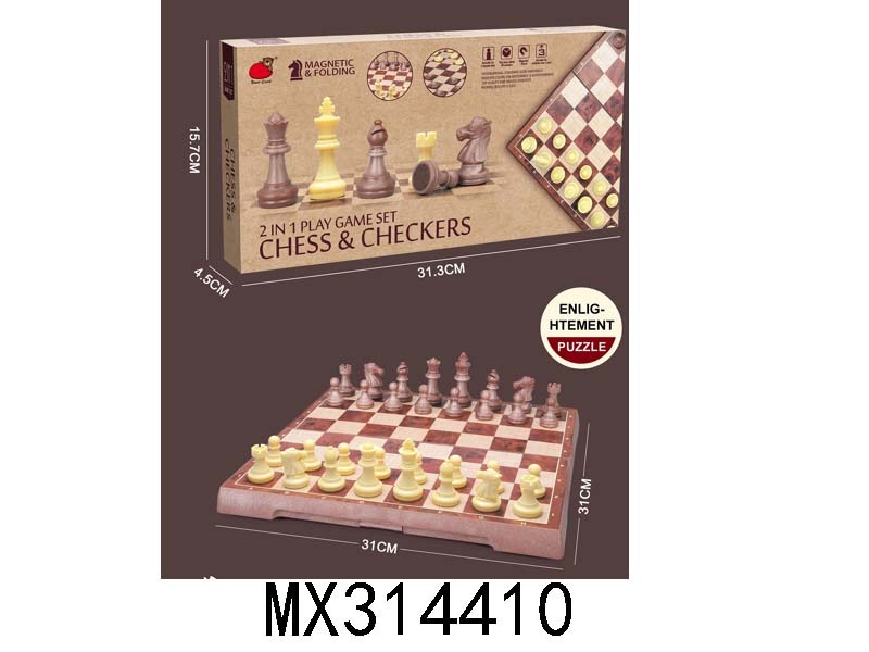 2-in-1 folding magnetic wood grain chess/Western checkers