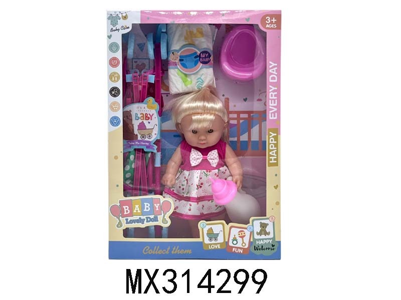 8-inch empty doll, toilet seat, diaper, baby bottle cart