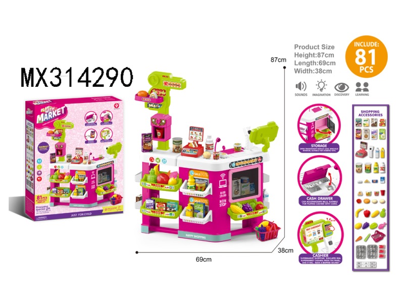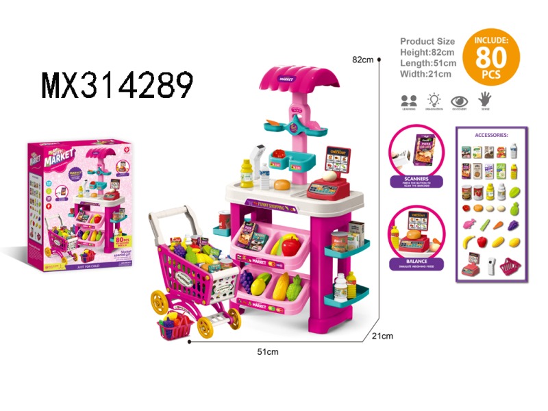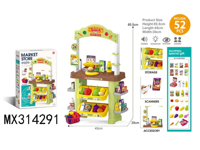 Supermarket platform+shopping cart/sound and light
