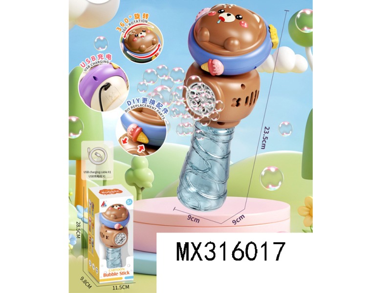 Dessert Circle Bear Rotating Electric Bubble Stick/With Light (Function: 360 degree rotation by hand) Powered by Package
