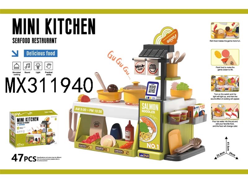 Kitchen Toys - Mini Seafood Shop (with color changing food, sound and light) 47pcs